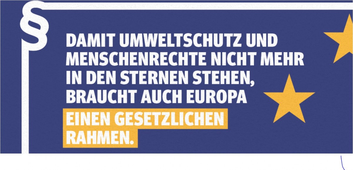 Aktuell setzen wir uns für ein -europäisches Lieferkettengesetz- ein. Dieses soll